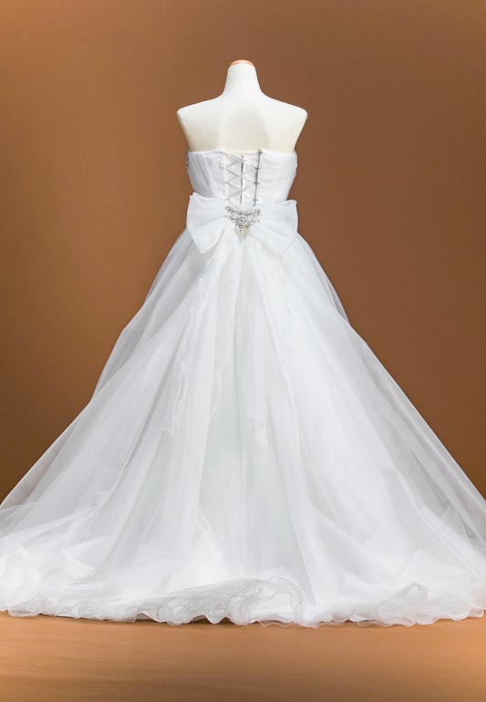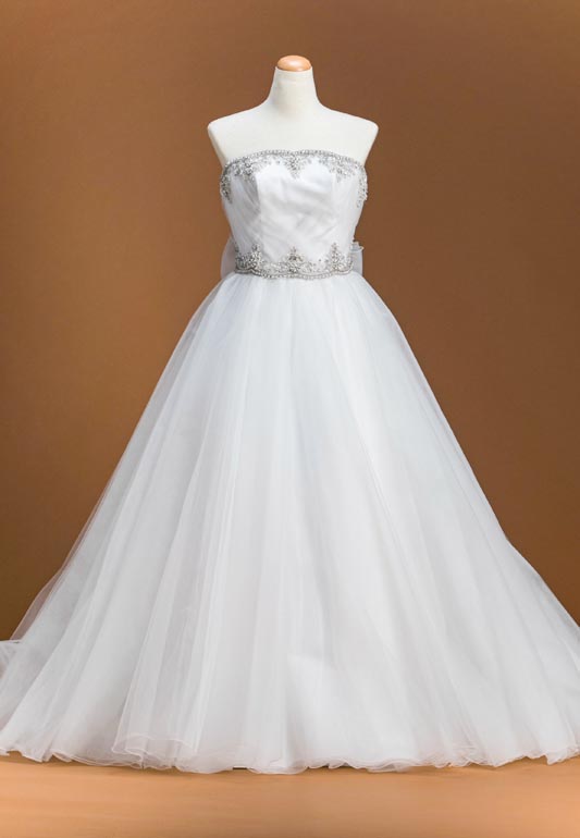 - 柔らかいチュールをふんだんに使ったプリンセスラインの5-9号サイズのドレス。チュール素材にビジューが華やかな、誰もがお姫様になれるプリンセスラインのウエディングドレスです。