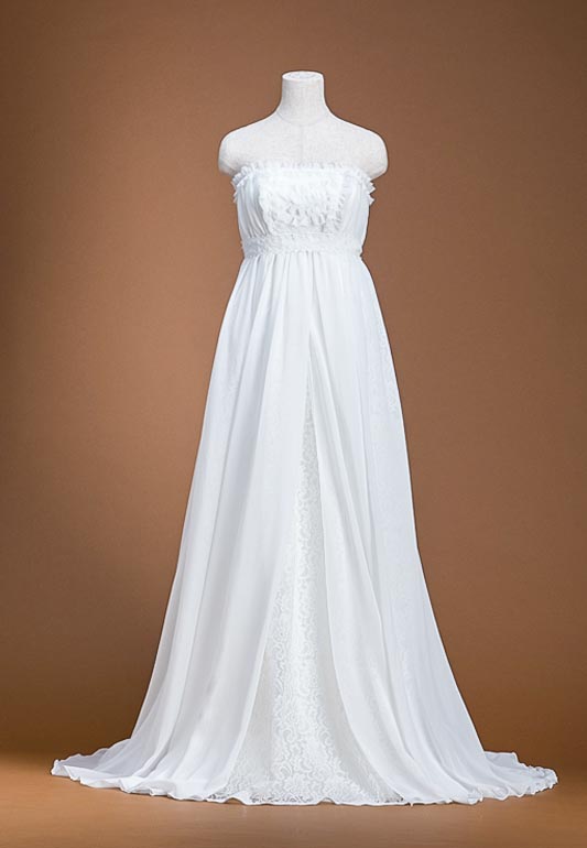 - リゾートウェディングにもぴったりで足長効果抜群なエンパイアラインのドレス。5号から9号のフリーサイズでジョーゼット素材が美しい1着です。