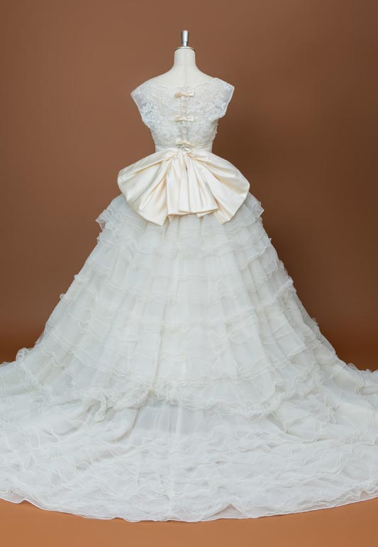 「OWチュールフレアティアードIV サテンサテンサッシュビスチェ ブラウス・後リボン」