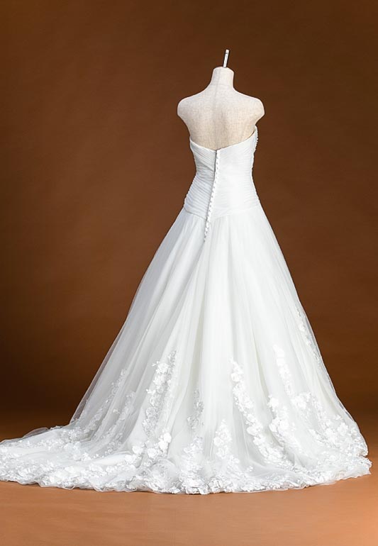 トップス部分がタッキングされ美しい陰影を作りだしてくれるAラインドレス