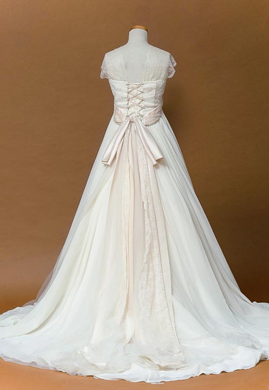 レースとジョーゼット生地使用の柔らかい雰囲気の1着です