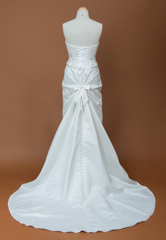 立体感のあるレースとくるみボタンが上品なサテンマーメイドドレス