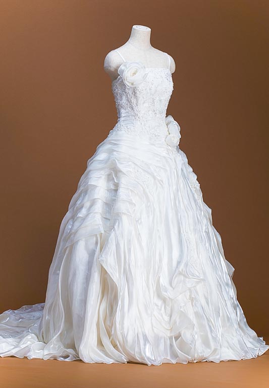 - 清楚な花嫁に。きらめきのあるオーガンジーを使った7-11号のAラインドレス。細やかな光沢のあるスパークオーガンジーを使用した特別感のある1着。スパークオーガンジーは透け感と強い光沢が特徴の素材。