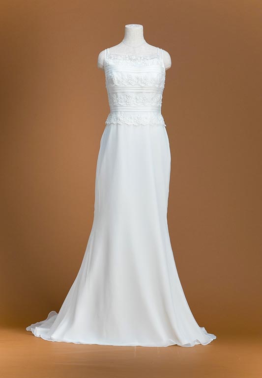 - 軽やかなジョーゼット生地で落ち着きのある大人な女性に人気。13号のマーメイドドレスをご紹介します。生地が軽くふんわりとしていて、動くたびに体に沿うようなトロミ感のでるドレス、繊細さと優美さを演出してくれます。上半身はお花のモチーフで可愛らしさをプラスしておりますので、ナチュラルな会場にはぴったりのドレスです。